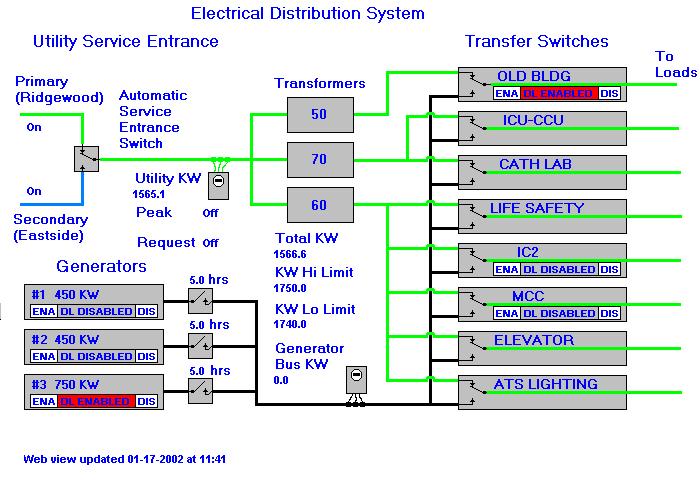 page used for monitoring and control of an electrical distrbution system. Transfer